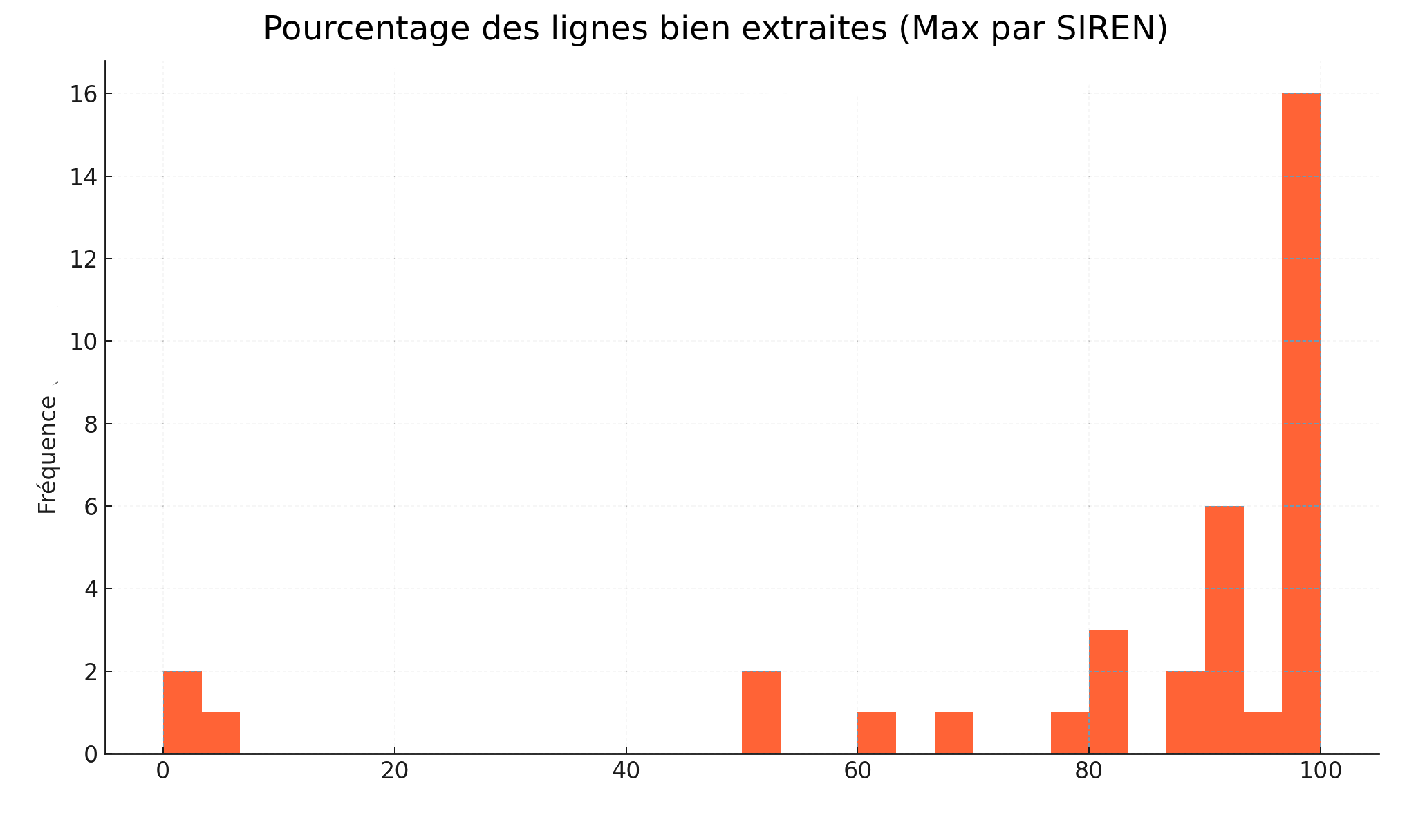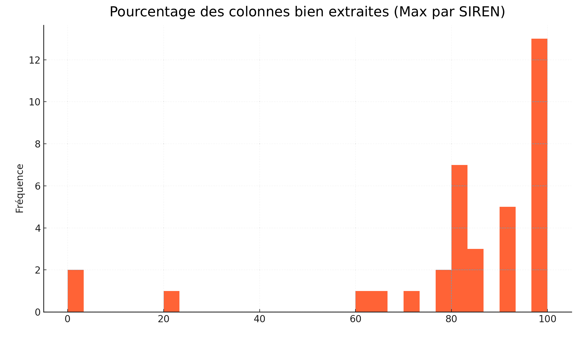 La majorité des erreurs se concentre sur un petit nombre de documents particulièrement complexes, expliquant la baisse des moyennes globales.